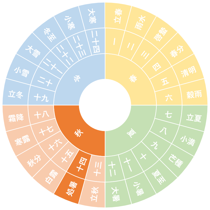 第十五節|白露(はくろ) 【時期】 9月7日から9月21日ころまで 【季節】 大気が冷えてきて、露ができ始めるころ。 『暦便覧』では、「陰気やうやく重りて、露にごりて白色となれば也」と説明している。 (Wikipediaより) 【白露末候】 【白露次候】 【白露初候】 【気象データ】 coming soon. 【次節|秋分】 【前節|処暑】 関連ノート一覧 【立冬初候】山茶始開|つばきはじめてひらく(11/7~11/11頃) 【大寒末候】鶏始乳|にわとりはじめてとやにつく(1/30~2/3頃) 【第二節】雨水|うすい(2/19~3/4頃) 【夏至末候】半夏生|はんげしょうず(7/1~7/6頃) コメント コメント ( 0 ) トラックバック ( 0 ) この記事へのコメントはありません。 この記事へのトラックバックはありません。 トラックバック URL 返信をキャンセルする。 ---------- OR ---------- 名前 ( 必須 ) E-MAIL ( 必須 ) ※ 公開されません URL
