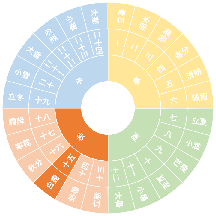 第十六節|秋分(しゅうぶん) 【時期】 9月22日から10月7日ころまで 【季節】 春分と同様に、秋分では昼夜の長さが等しくなる。 『暦便覧』では「陰陽の中分なれば也」と説明している。 しかし、実際には、昼の方が夜よりも長い。 日本付近では、年による差もあるが、平均すれば昼が夜よりも約14分長い。 日本ではこの日は国民の祝日の「秋分の日」となる。 (Wikipediaより) 【秋分末候】 【秋分次候】 【秋分初候】 【気象データ】 coming soon. 【次節|寒露】 【前節|白露】 関連ノート一覧 【小暑末候】鷹乃学習|たかすなわちわざをなす(7/17~7/21頃) 【第二十四節】大寒|だいかん(1/20~2/3頃) 【第十八節】霜降|そうこう(10/23~11/6頃) 【大寒初候】款冬華|ふきのはなさく(1/20~1/24頃) コメント コメント ( 0 ) トラックバック ( 0 ) この記事へのコメントはありません。 この記事へのトラックバックはありません。 トラックバック URL 返信をキャンセルする。 ---------- OR ---------- 名前 ( 必須 ) E-MAIL ( 必須 ) ※ 公開されません URL