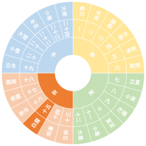 略本暦(日本) 【名称】鶺鴒鳴 【読み】せきれいなく 【意味】鶺鴒(せきれい)が鳴き始める 【時期】9月12日~9月16日ころ 【二十四節気】第十五節|白露次候 宣明暦(中国版) 【名称】玄鳥帰 【意味】燕が南へ帰って行く 『現代版』七十二候 あなたが考える『現代版』の白露次候は? 白露次候 秋刀魚切欲|さんませつにほっす 自由に答えを追加してね。 結果はこちら Poll Options are limited because JavaScript is disabled in your browser. 【後の候】 【前の候】 【当節|白露】 関連ノート一覧 【大寒次候】水沢腹堅|さわみずこおりつめる(1/25~1/29頃) 【第十二節】大暑|たいしょ(7/23~8/6頃) 【大暑初候】桐始結花|きりはじめてはなをむすぶ(7/22~7/27頃) 【大雪次候】熊蟄穴|くまあなにこもる(12/12~12/15頃) コメント コメント ( 0 ) トラックバック ( 0 ) この記事へのコメントはありません。 この記事へのトラックバックはありません。 トラックバック URL 返信をキャンセルする。 ---------- OR ---------- 名前 ( 必須 ) E-MAIL ( 必須 ) ※ 公開されません URL
