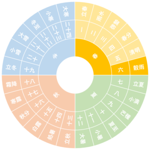 略本暦(日本) 【名称】牡丹華 【読み】ぼたんはなさく 【意味】牡丹の花が咲く 【時期】4月30日~5月4日ころ 【二十四節気】第六節|穀雨末候 宣明暦(中国版) 【名称】戴勝降于桑 【意味】戴勝(やつがしら)が桑の木に止って蚕を生む 『現代版』七十二候 あなたが考える『現代版』の穀雨末候は? 穀雨末候 田水入|たんぼにみずはいる 自由に答えを追加してね。 結果はこちら Poll Options are limited because JavaScript is disabled in your browser. 【後の候】 【前の候】 【当節|穀雨】 関連ノート一覧 【第十節】夏至|げし(6/21~7/6頃) 【寒露次候】菊花開|きくのはなひらく(10/13~10/17頃) 【第二十四節】大寒|だいかん(1/20~2/3頃) 【夏至末候】半夏生|はんげしょうず(7/1~7/6頃) コメント コメント ( 0 ) トラックバック ( 0 ) この記事へのコメントはありません。 この記事へのトラックバックはありません。 トラックバック URL 返信をキャンセルする。 ---------- OR ---------- 名前 ( 必須 ) E-MAIL ( 必須 ) ※ 公開されません URL