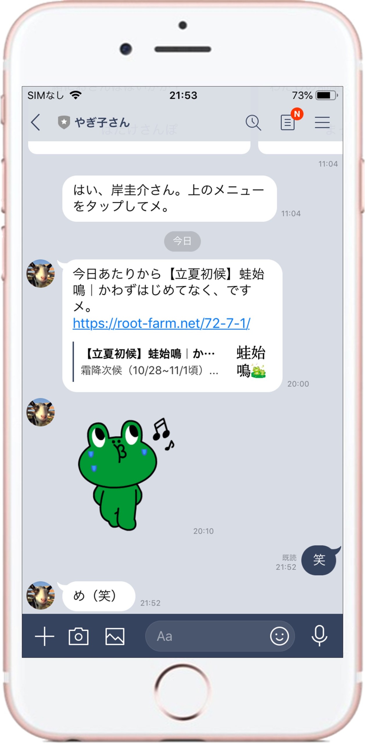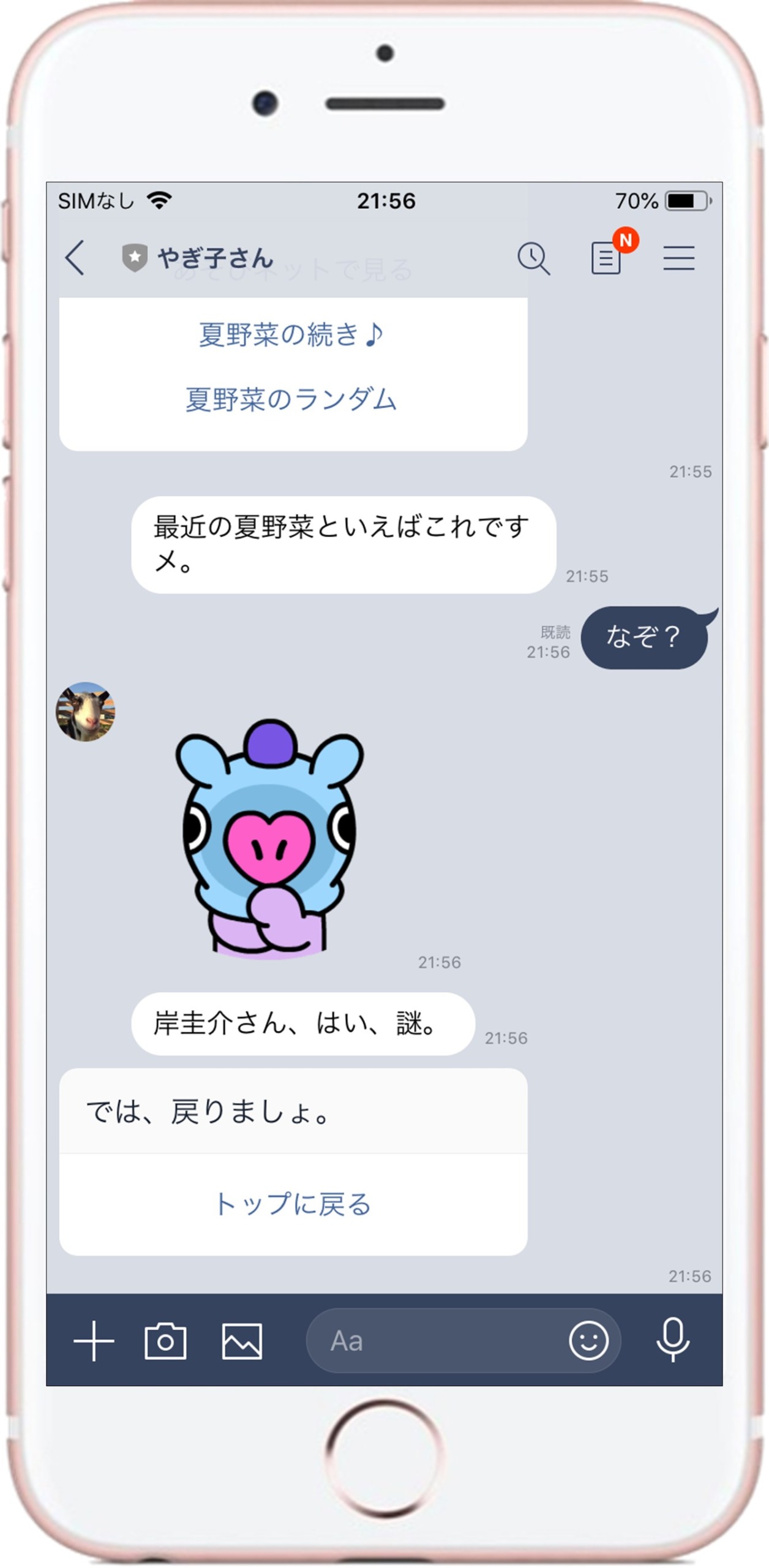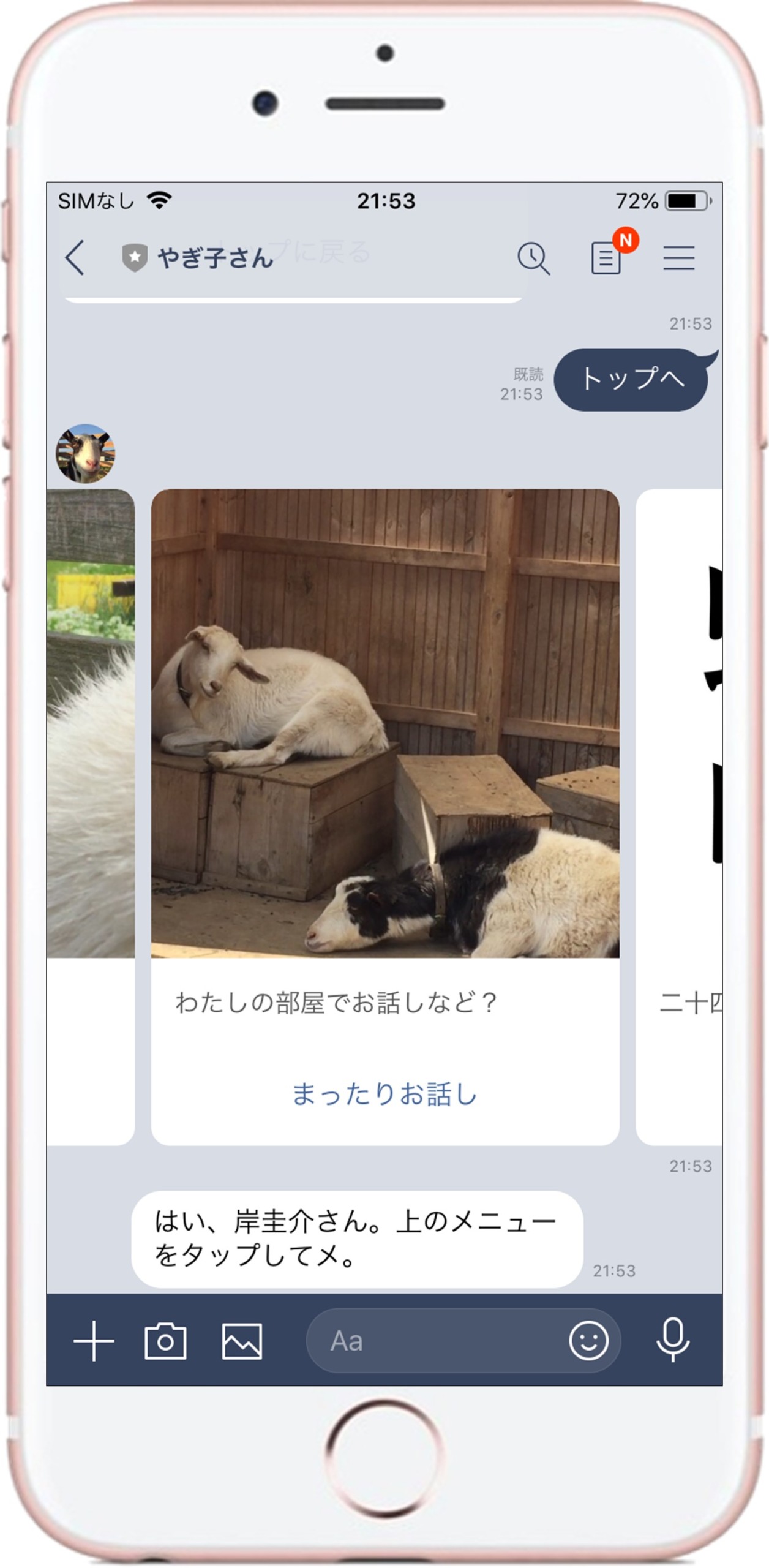 実験的な取り組みですが、やぎ子さんとLINEでチャットできます。