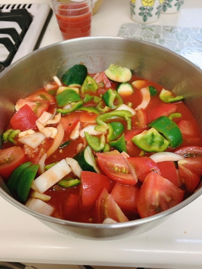 あしがらからたくさん持ち帰ったぴーまんときゅうり。トマト、玉ねぎ、にんにく、バゲットと共に… 刻んでトマトジュースにIN。ビネガーも入れてしばらく漬け込み… ミキサーで攪拌すれば、スペインの夏の冷たいスープ、ガスパチョの出来上がり🎶夏バテ知らずです(^-^)v 関連ノート一覧 ぶろっこりとにんじん 【菌フォーラム】根粒菌について 【虫フォーラム】カメムシの交尾 おでんにお野菜? コメント コメント ( 1 ) トラックバック ( 0 ) とまと 2020.09.03 17:56 返信 おしゃれそウ。 この記事へのトラックバックはありません。 トラックバック URL 返信をキャンセルする。 ---------- OR ---------- 名前 ( 必須 ) E-MAIL ( 必須 ) ※ 公開されません URL