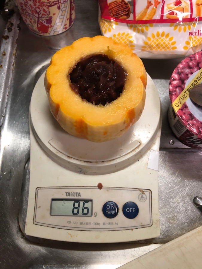 缶入りゆで小豆で作る蒸し羊羹のレシピ見ると、ゆで小豆に対し小麦粉の量は5-10%。10%前後のレシピが多く、少ないものの場合粉が強力粉だったり、片栗粉を加えたりとなっていました。なるほど。前回のファーブルトンの時に、かぼちゃと詰め物を一緒に味わう場合詰め物の甘みは強めが美味しいと感じたのでお砂糖を少し足しました。などと反省しているうちに、冷めたかな?