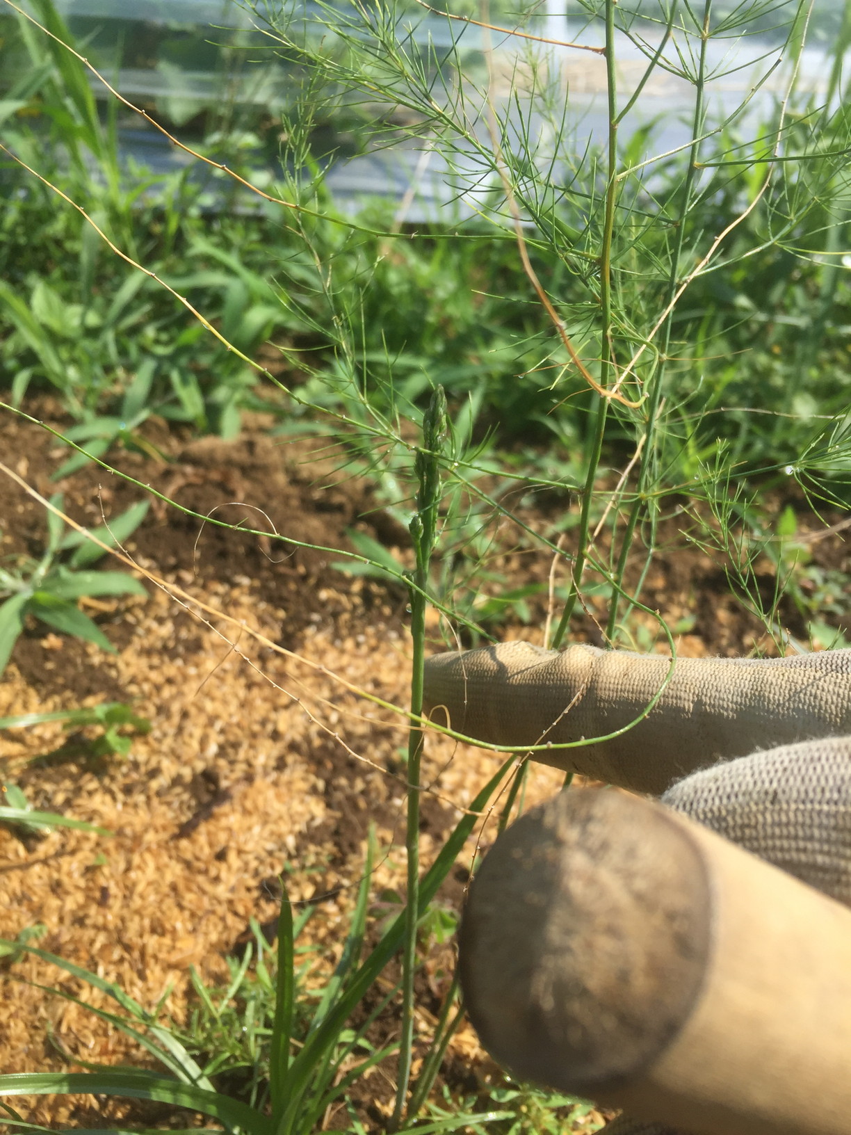 アスパラです。今は準備期で、来春にきちんとしたものが出てくることを期待しています。