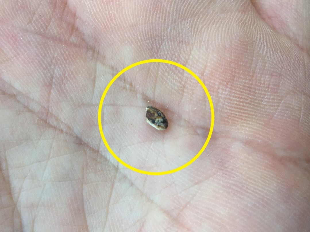 これに対シ、斑点米を含む着色米は、もみが熟す前から形成され、収穫時には既に斑点や着色が生じていまシ。また、カメムシの被害が残るのは、加害のごく一部なのでシ。ごく若い、中がまだミルクのような液状の時にカメムシが吸うと、米粒が実らず「しいな」になりまシ。もうすぐ収穫の、硬い米を吸うと割れてシまい、割れ米、小米になりまシ。つまり、黒い斑点やくさび形の傷跡が残るのはもみの中身が固くなり始めてからなり切る間の加害に限定されるのでシ。つまり、かなりの部分は証拠を残さず加害シておるのですわなぁ、シッシッシ。着色は、加害時の傷跡とシて生じるものと、カメムシ由来またはその他の菌の感染によって生じるものがありまシ。