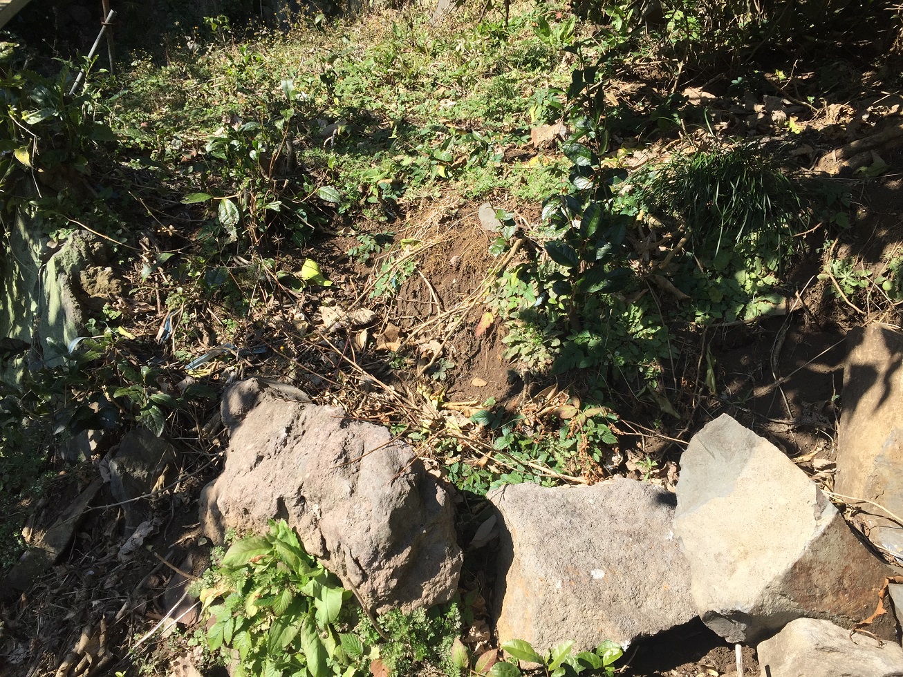 レモン畑、掘ってるゾ。石垣も崩すゾ。