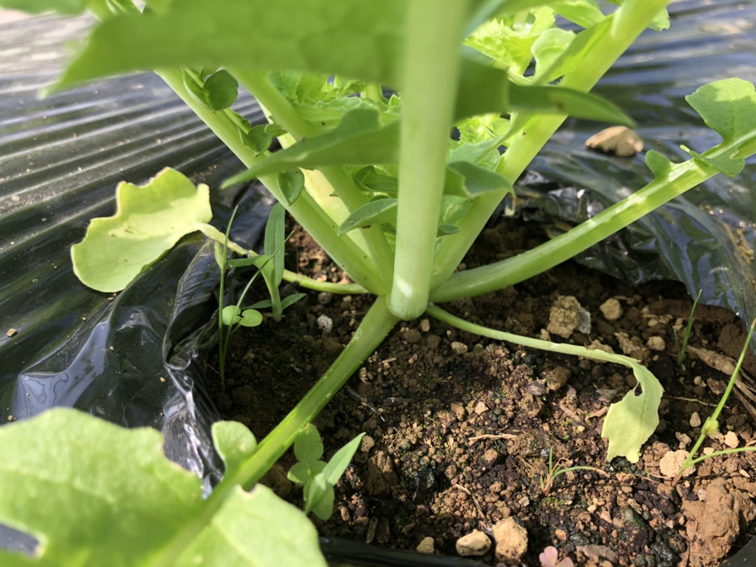 大根スクスク。あと少しで肩が見えてきそう!収穫まではあと30日。