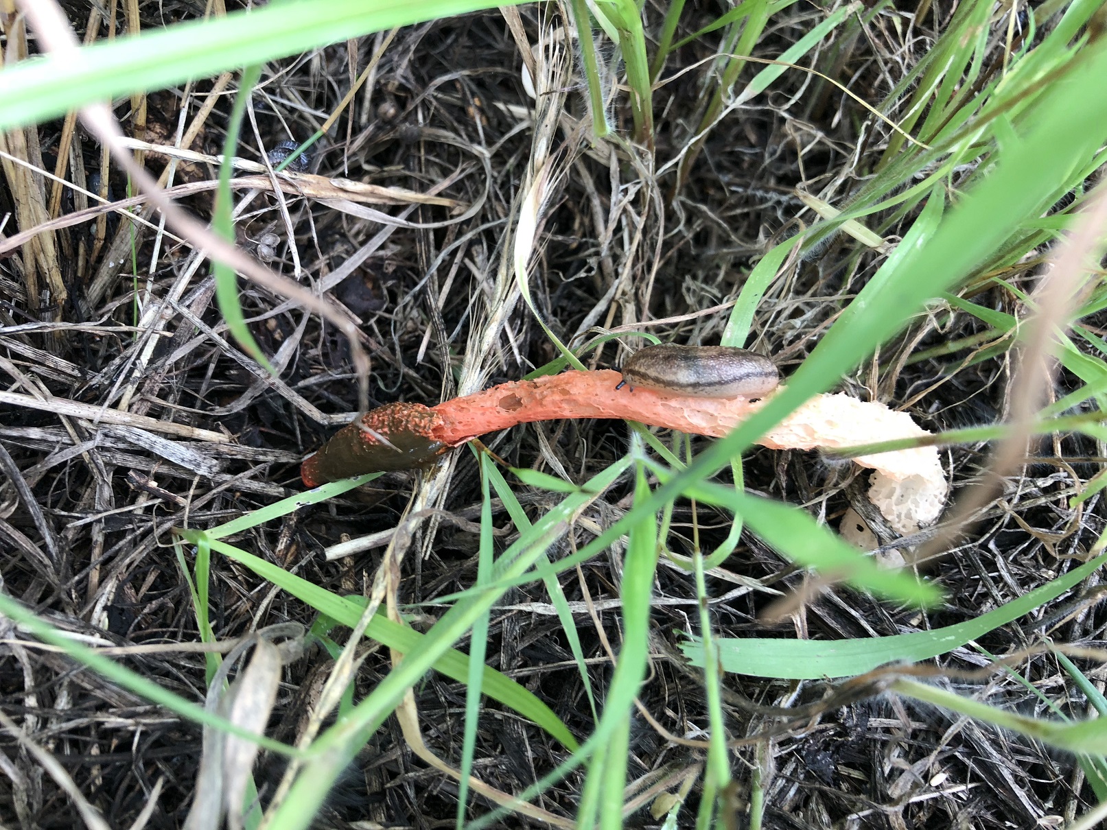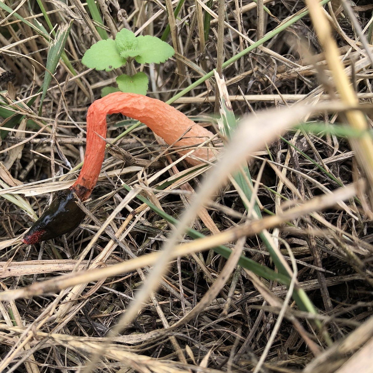 おうちに帰って調べたら 先っぽの黒っぽいところからいやーな匂いを出してハエを呼び 胞子を運んでもらうという珍しい生態を持つきのこだそうで 嗅いで見ればよかったなと 翌日行って見たらもうなかった どこにいっちゃった?