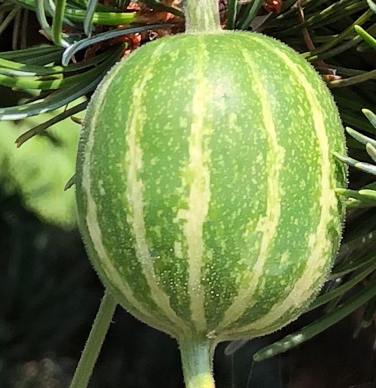未熟の果実は形もしましまもウリ坊みたいでなかなかかわいい。