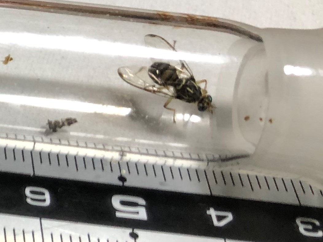 おまけ。カラスウリの雄花を食べることで知られている「ミスジミバエ」です。