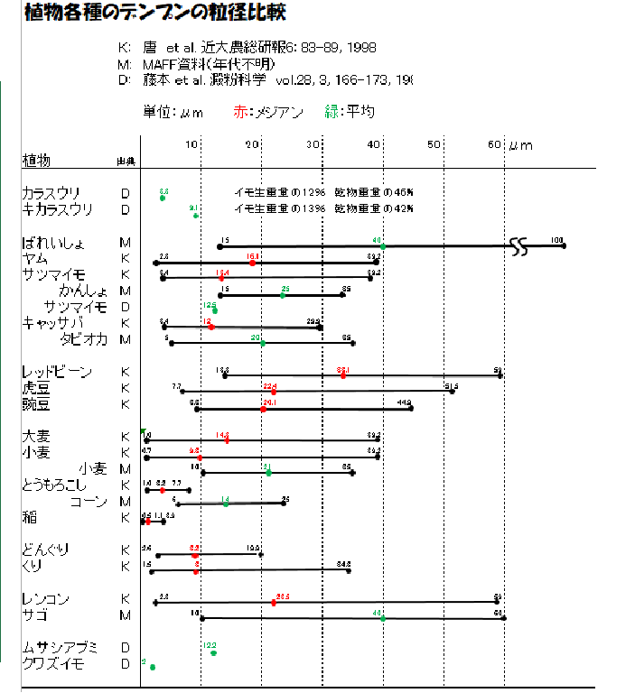 *カラスウリのデンプンについての研究論文見つけました。ほかの植物のデンプンについても粒子径の数値があったので一覧表にしてみました。参考文献リスト代わりね。