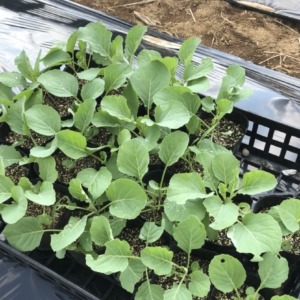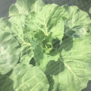 収穫が遅かったのか、収穫して置いておいたキャベツなのか、花芽ができているのがわかりますね。